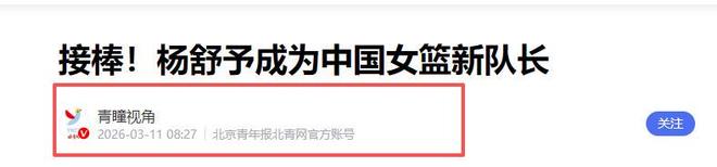 青瞳視角2026-03-11《接棒!楊舒予成為中國女籃新隊長》