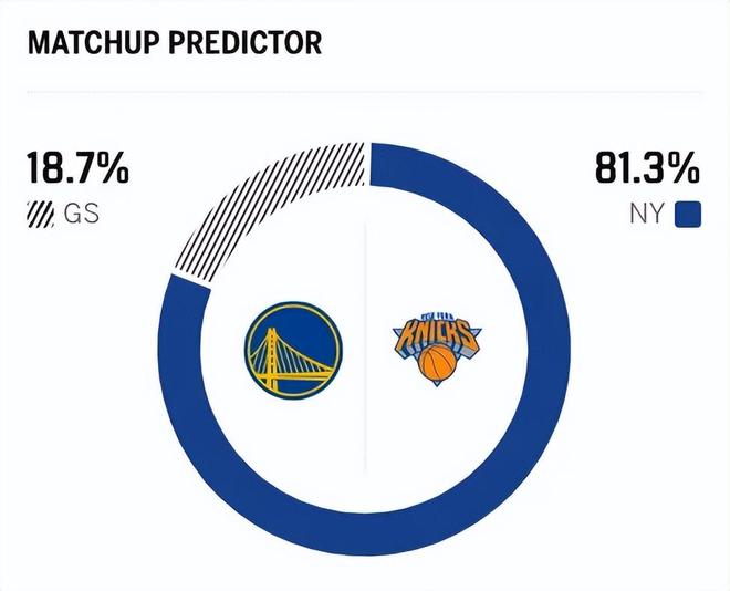 賽前,美媒ESPN對本場比賽進行了勝率預測,尼克斯隊勝率高達81.3% ,勇士勝率則僅有18.7% ,差距非常明顯。
