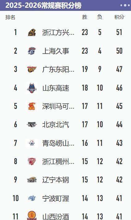 附:CBA積分榜最新排名
