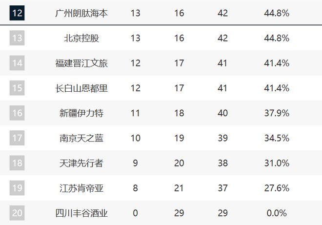 第12的競爭就非常激烈了。廣州這輪取勝之後,現在排在第12,不過北控這輪艱難擊敗浙江,他們和廣州的勝場是一樣的。福建最近的狀態非常好,吉林第三階段3勝3負,這兩支球隊落後廣州也就1個勝場。