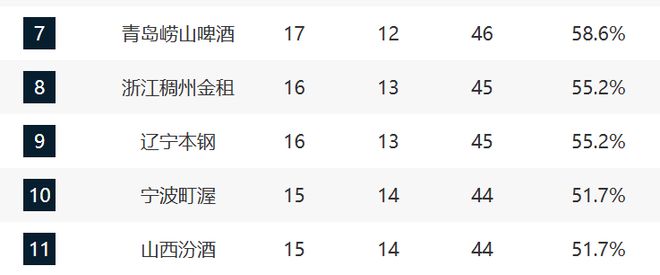 7-11分別是青島、浙江、遼寧、寧波與山西。青島和浙江這輪都輸球了,青島輸給了福建,核心還是下半場進攻沒有打開,被對手逆轉,反正球迷都看得莫名其妙。浙江則輸給了北控,內線還是太被動了。遼寧這輪逆轉同曦,布羅金頓的挖掘對球隊的提升是實質性的。寧波大勝新疆,展現了驚喜。至於山西這輪輸給廣州,核心還是迪亞洛不能打,隊內多人出現身體不適的情況。