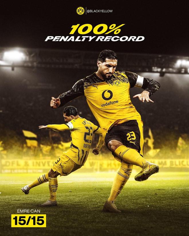 至此,自加盟多特蒙德以來,埃姆雷-詹代表球隊在各項賽事15次主罰點球全部打進,命中率100%,其中包括德甲12次,歐冠2次,德國杯1次。