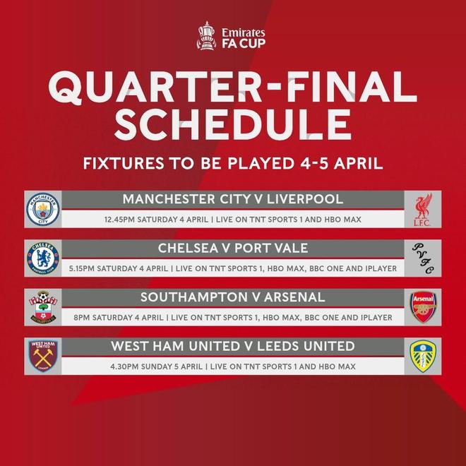 - 足總杯1/4決賽開球時間:4月4日19:45黃金時間曼城vs利物浦