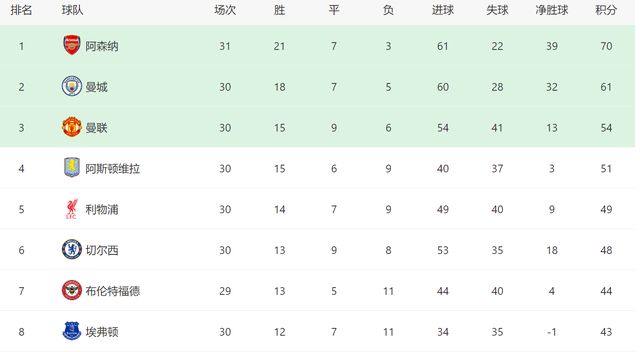 隨著利物浦爆冷,爭四的形勢也發生了巨大的變化。在此之前,切爾西在主場輸給了紐卡斯爾,再加上維拉在客場1-3慘敗給曼聯,本輪比賽,利物浦、切爾西和維拉3支爭四強隊全部不勝,曼聯也成為唯一的贏家。截至目前,在積分榜上,曼聯領先第五的利物浦5分,已經甩開身後的對手至少一個身位了。