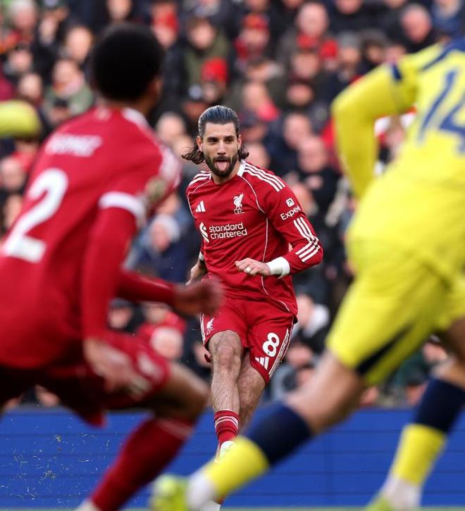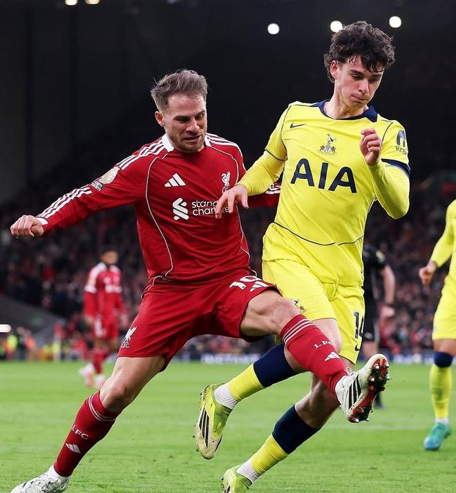 麵對最近3次交手,全部敗在自己腳下的熱刺,利物浦在主場沿用了4231的陣型,首發門將阿利森、羅伯遜、範戴克、喬戈麥斯和索博斯洛伊構築後防,麥卡利斯特和赫拉芬貝赫搭檔雙後腰,恩古莫哈、維爾茨和弗林蓬坐鎮中場,單箭頭則是加克波。