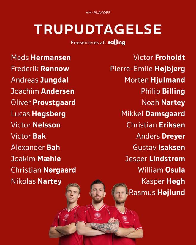 北京時間3月17日,丹麥隊公布了最新一期的大名單,其中內爾高、埃裏克森、霍伊倫等球員在列。