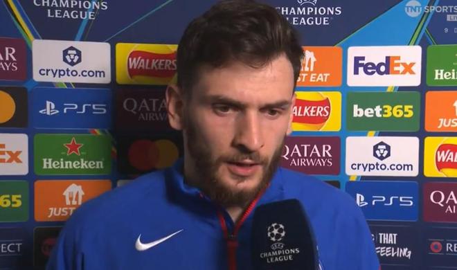 在客場3-0戰勝切爾西,總比分8-2晉級歐冠八強的賽後,本場比賽打入一球的巴黎前鋒克瓦拉茨赫利亞接受了TNT體育的采訪。
