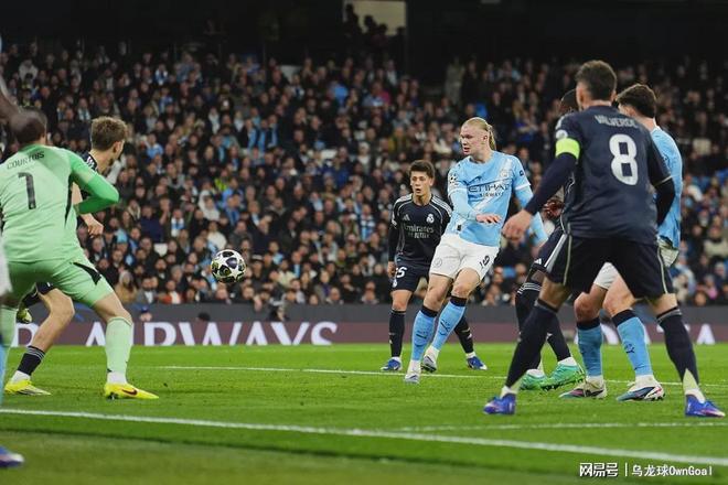 第41分鍾,多庫在禁區完成一次漂亮的過人送助攻,門前的哈蘭德破門扳平比分,曼城1-1皇馬。為曼城打進一球,哈蘭德終結各項賽事4場的進球荒,他在本賽季已經打進30球。