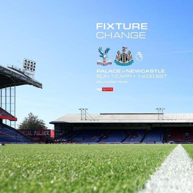英超第32輪,水晶宮主場對陣紐卡的比賽原定於4月11日22:00,現改至4月12日21:00(以上時間均為北京時間)。
